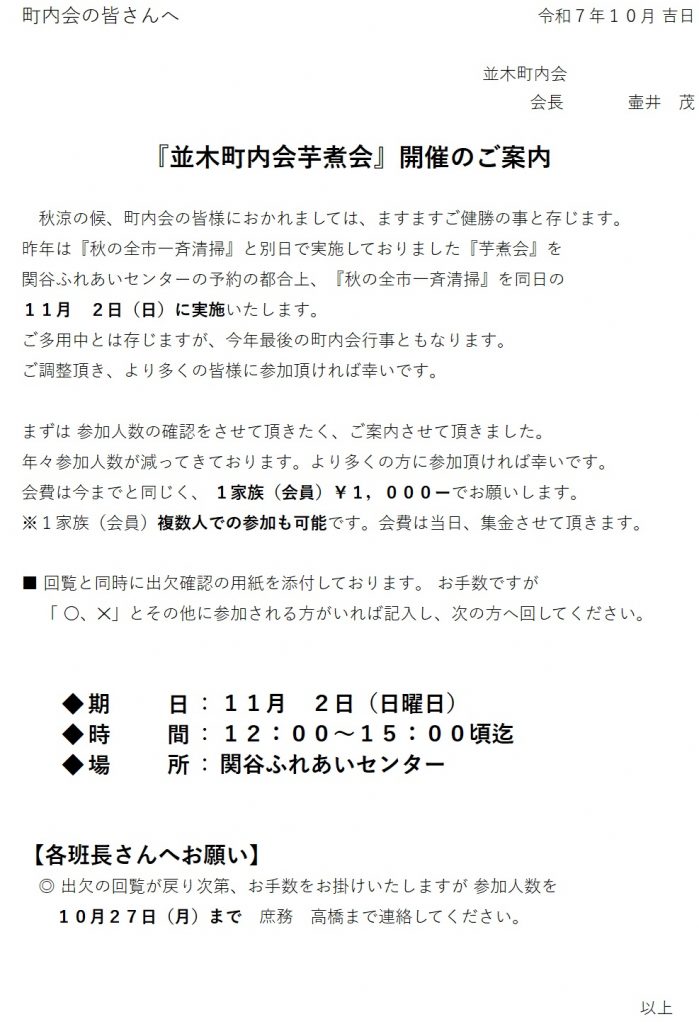 『並木町内会芋煮会』開催のご案内 [PDFファイル/720 KB]