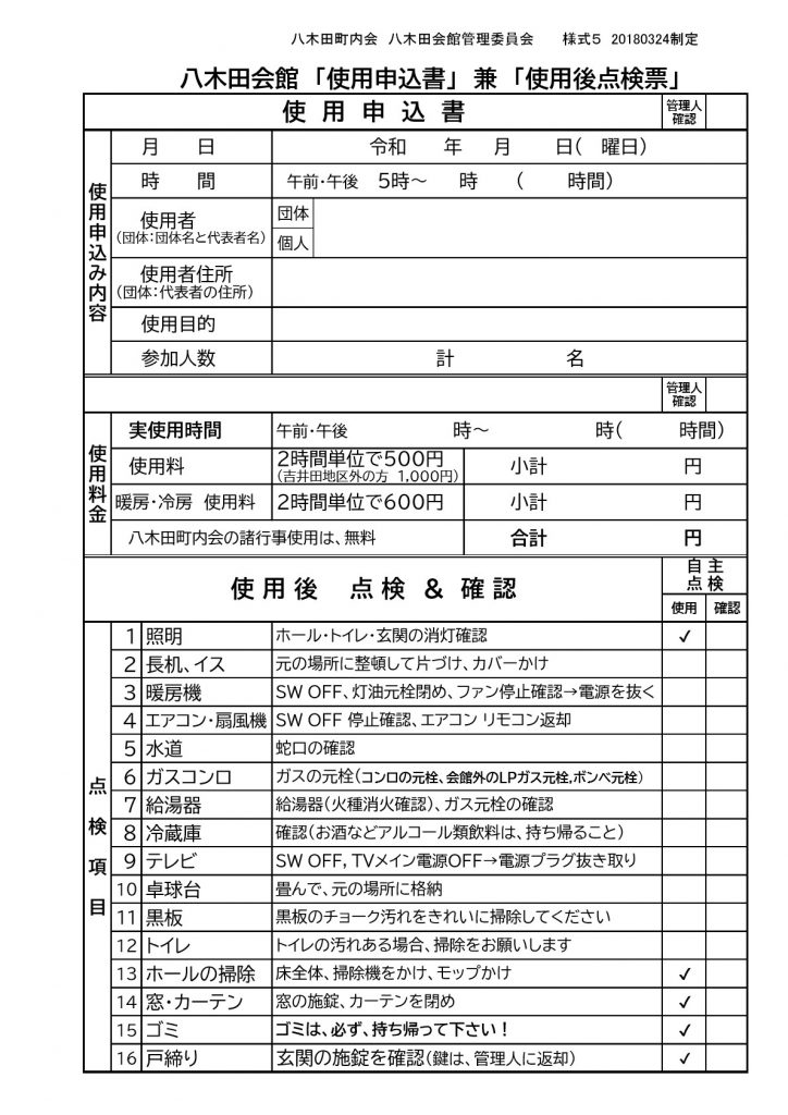 【お知らせ】八木田会館の「ご利用案内」「使用申込書」を掲載しました