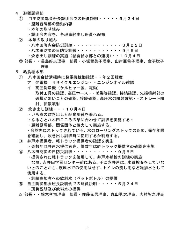 【お知らせ】【防災部会】令和8年度事業計画を策定しました 2026年4月22日 Last updated : 2026年4月22日 八木田町内会 八木田町内会自主防災部会の令和8年度事業計画を策定しました。 トップページの「八木田町内会自主防災部会について」においてご覧いただけます。 【PDF】令和8年度八木田町内会自主防災部会事業計画 [PDFファイル/] [PDFファイル/] [PDFファイル/]